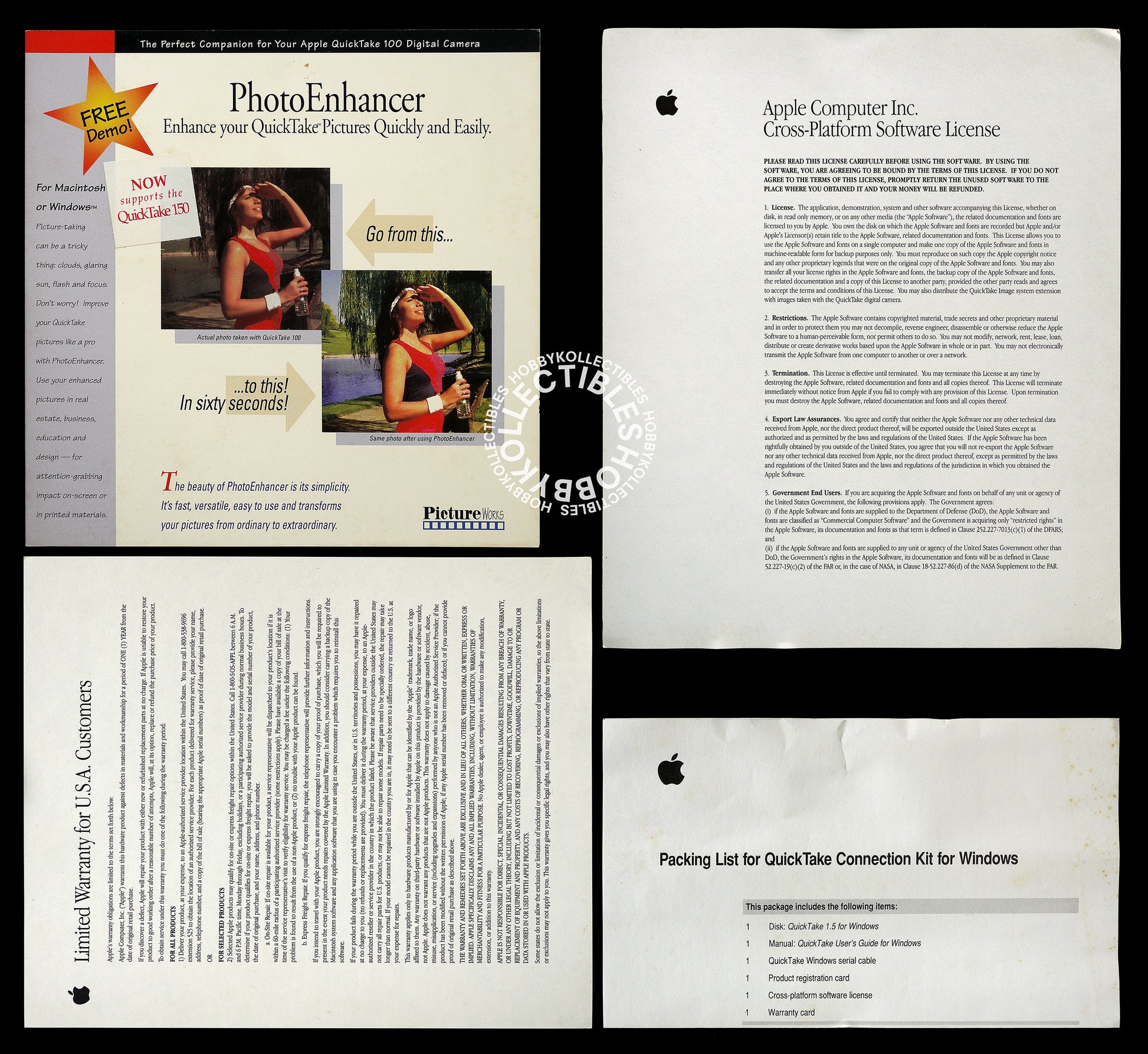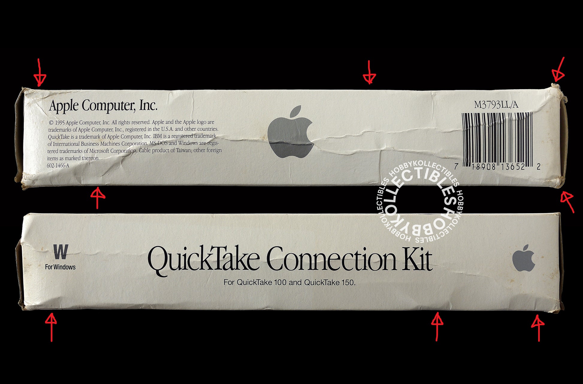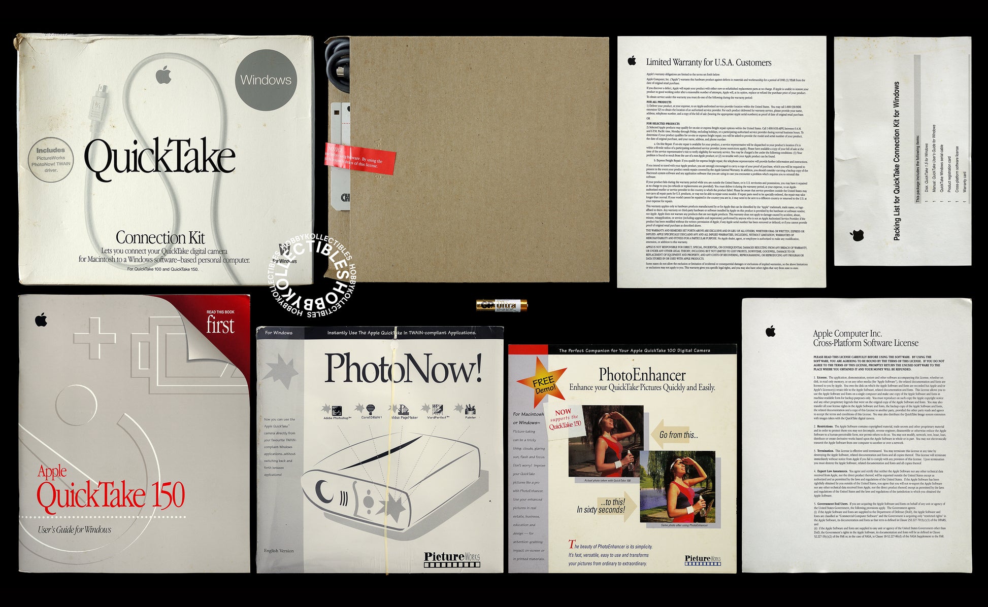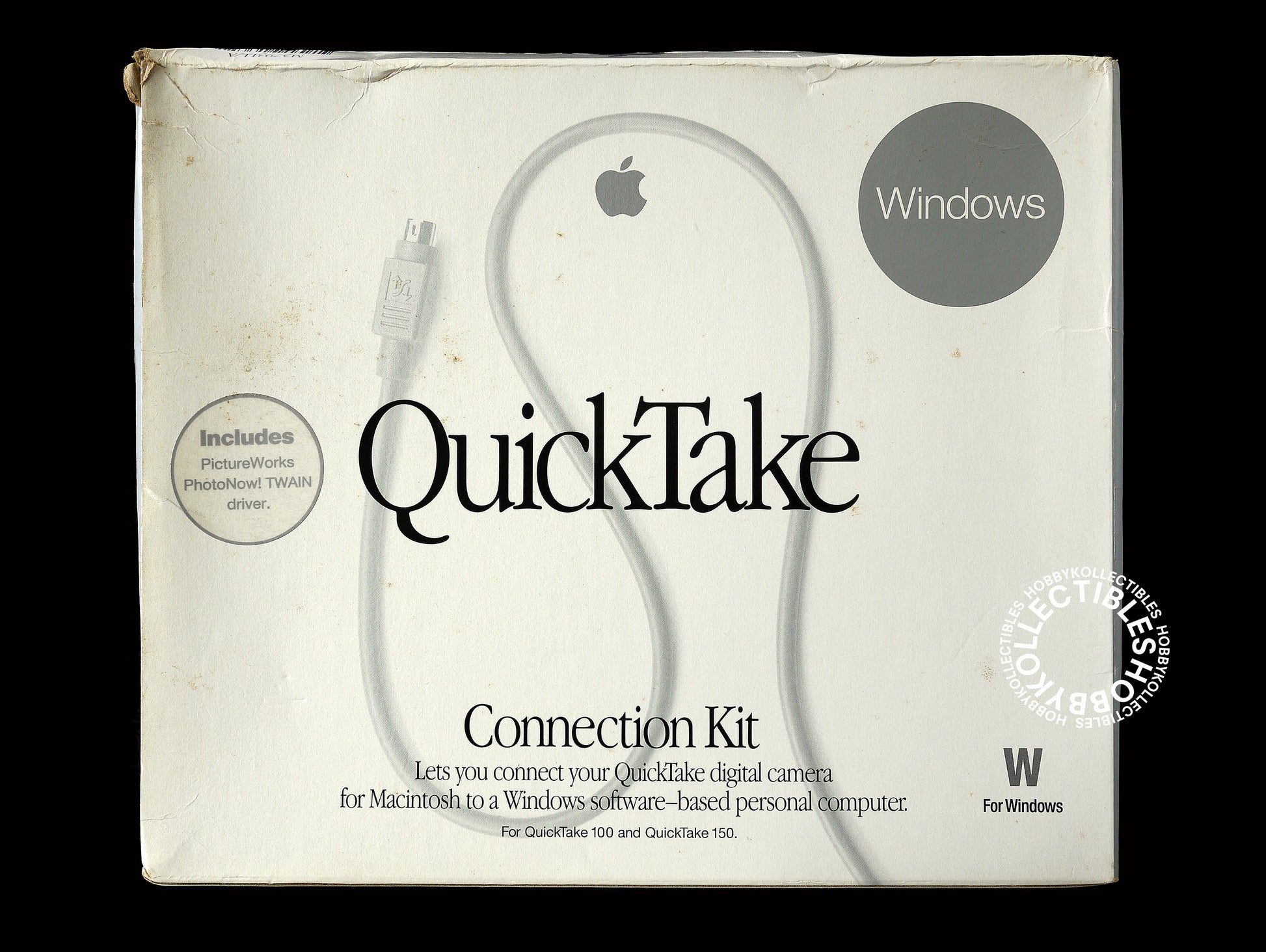 Up for sale is a vintage Apple QuickTake connection kit, works with the Apple QuickTake 100/150 digital camera, new old stock item and never been use but the box is in very poor condition, this is the first time I open the box and just for taking photos only. Comes with all documentation and box. Made in 1995 - the golden and real creative era of Apple.