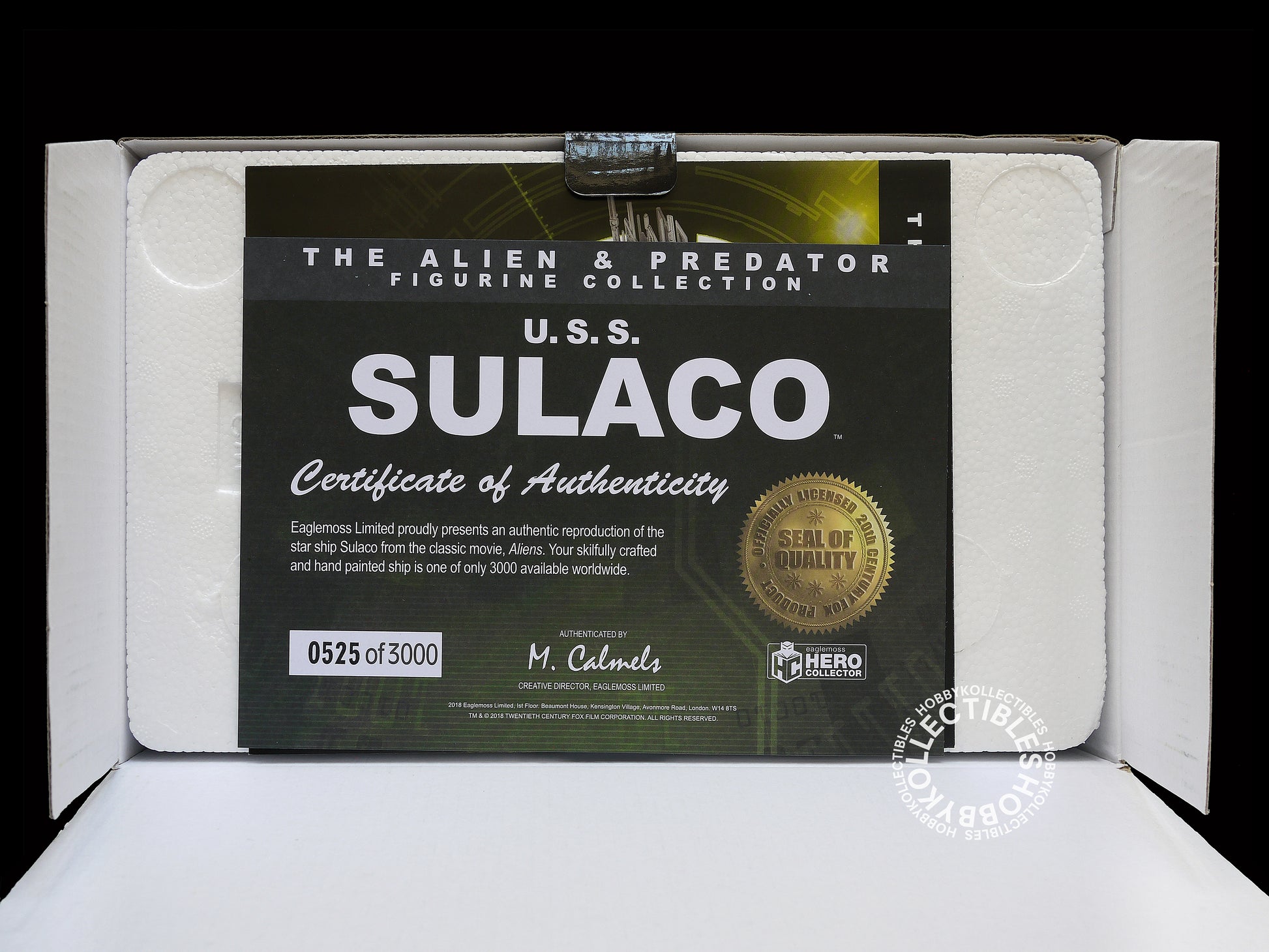 Up for sale is a beautiful Eaglemoss Aliens Sulaco - made of combination of die-cast & high-quality ABS plastic(Metallic resin), limited edition only 3000 worldwide, each ship comes with a numbered certificate of authenticity. This is the 1st time I open the box with much care - just for inspection & taking photos only, the ship and accessories has never been taken out of box, all are brand new in box, highly desirable and collectible so don't miss it!