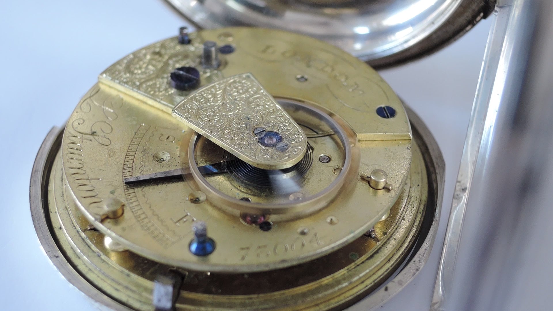 Dial : White enamel dial with few faint hairline, cracks at 10 & 11 o'clock position, few chips on dial edges, dirty with stains, signed "L.STAUNTON LONDON" with a anchor logo. Gold spade hands seems to be original, blue steel seconds hand. Black Roman numerals and subsidiary seconds dial.