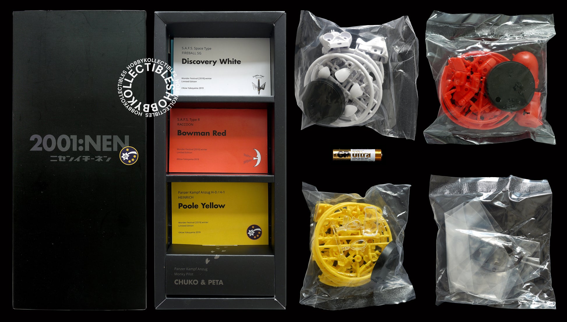 • This box contains 4 plastic model kits and 3 decal sheet. (SAFS Fireball SG, SAFS Type R Raccoon, PKA H-0/H-1 Heinrich and PKA Monky Pilot.