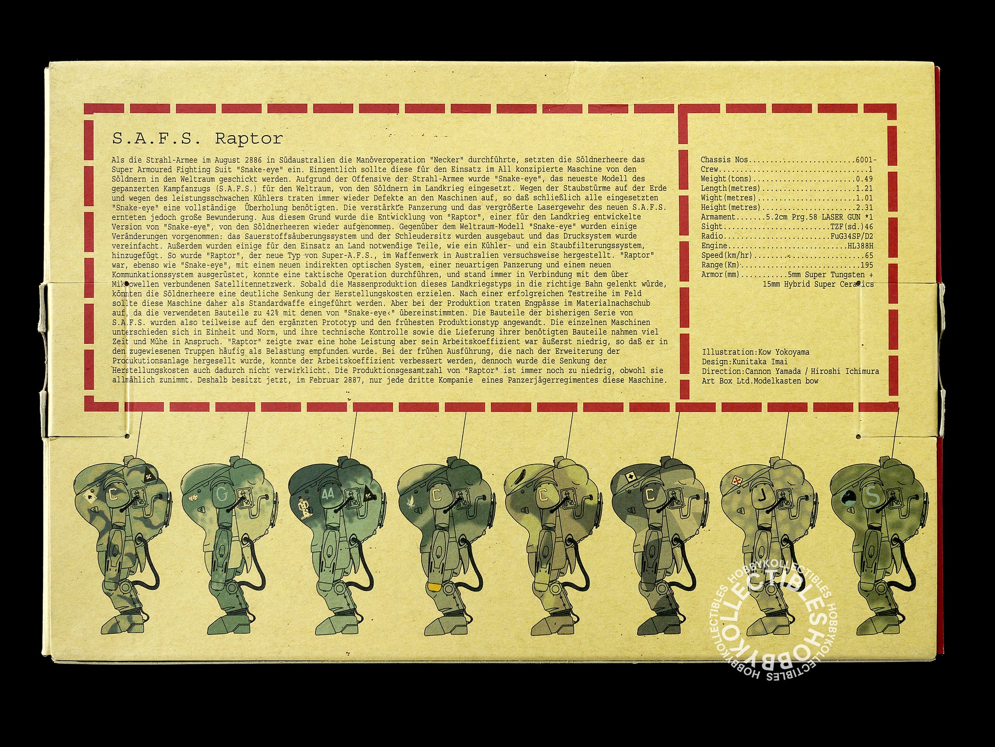 Due to there was a dispute with Hobby Japan over the copyright in 1986, Nitto ceased production of various kits until late 1990’s and changed the old “SF3D” name to “Maschinen Krieger Zbv3000”, otherwise known as the “Ma.K”.