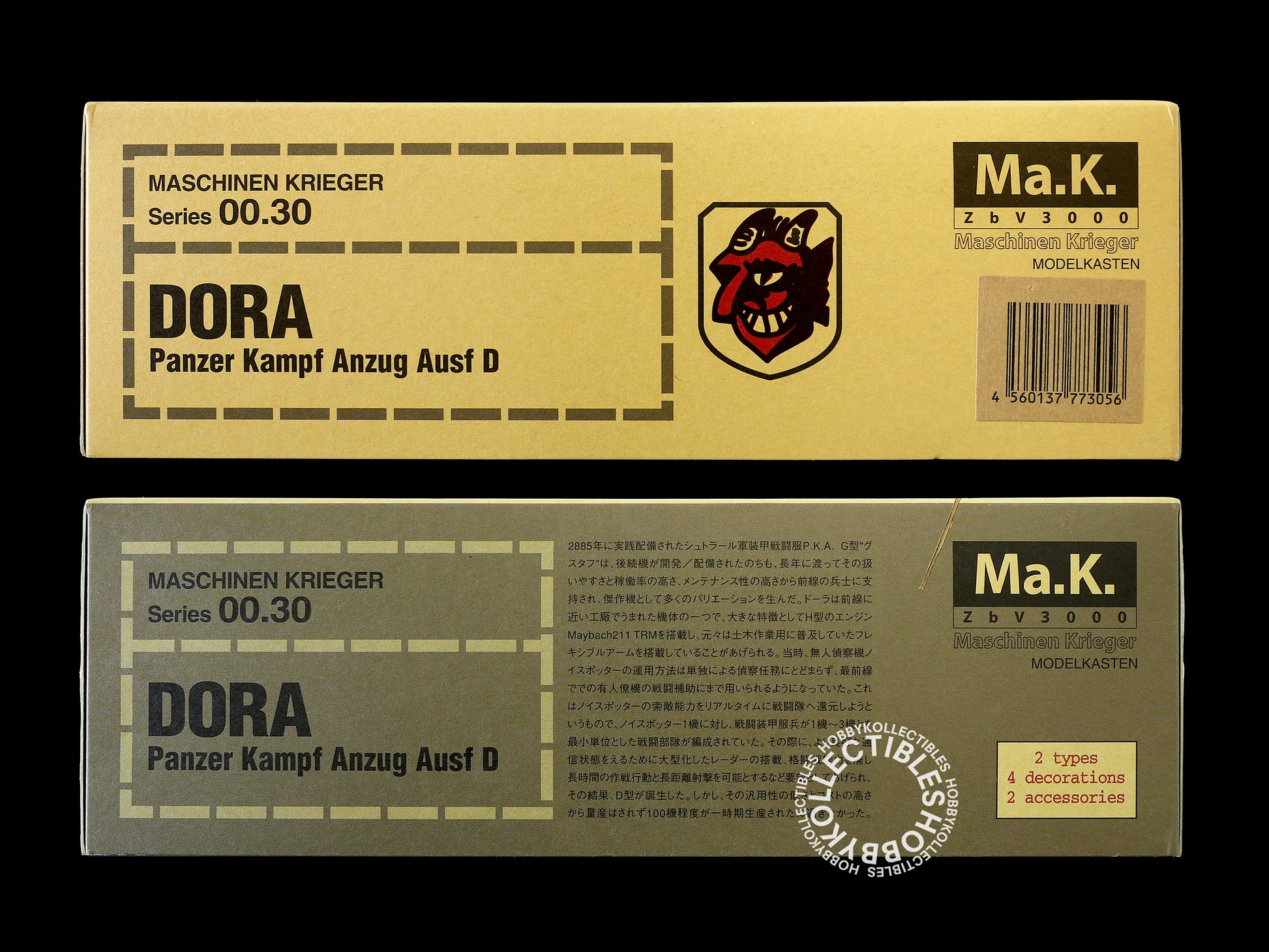 Due to there was a dispute with Hobby Japan over the copyright in 1986, Nitto ceased production of various kits until late 1990’s and changed the old “SF3D” name to “Maschinen Krieger Zbv3000”, otherwise known as the “Ma.K”.