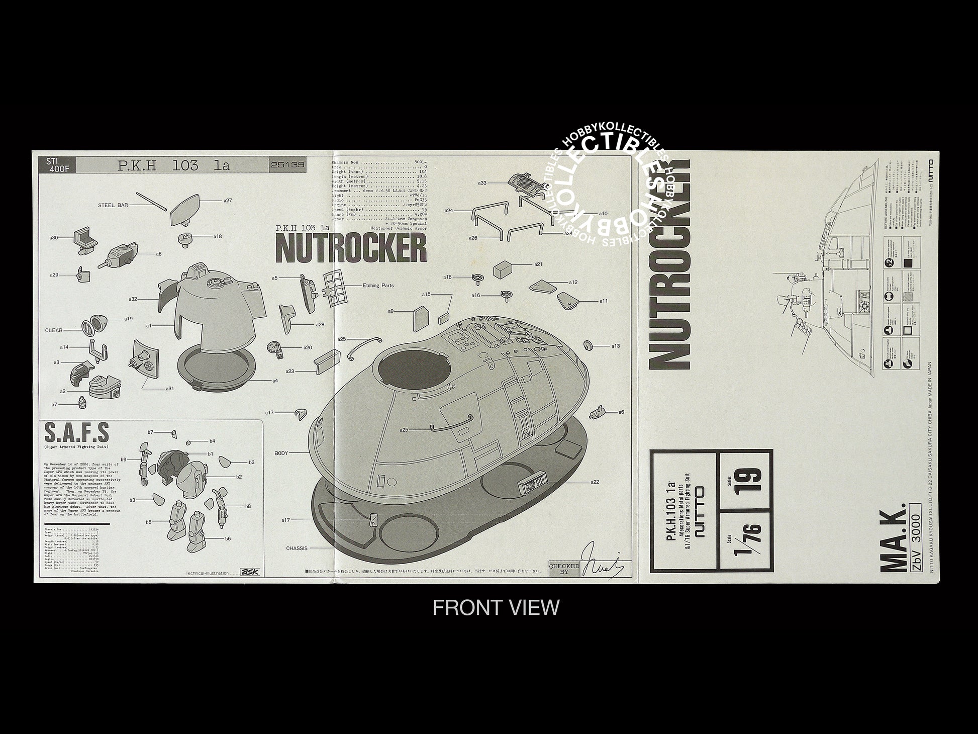Up for sale is a beautiful & awesome Ma.K Nitto(2nd generation) 1/76 scale "Nutrocker" model kit, comes with a small photo-etching part and one S.A.F.S. too! This is a re-released version in 1998 by Nitto production with passion!
