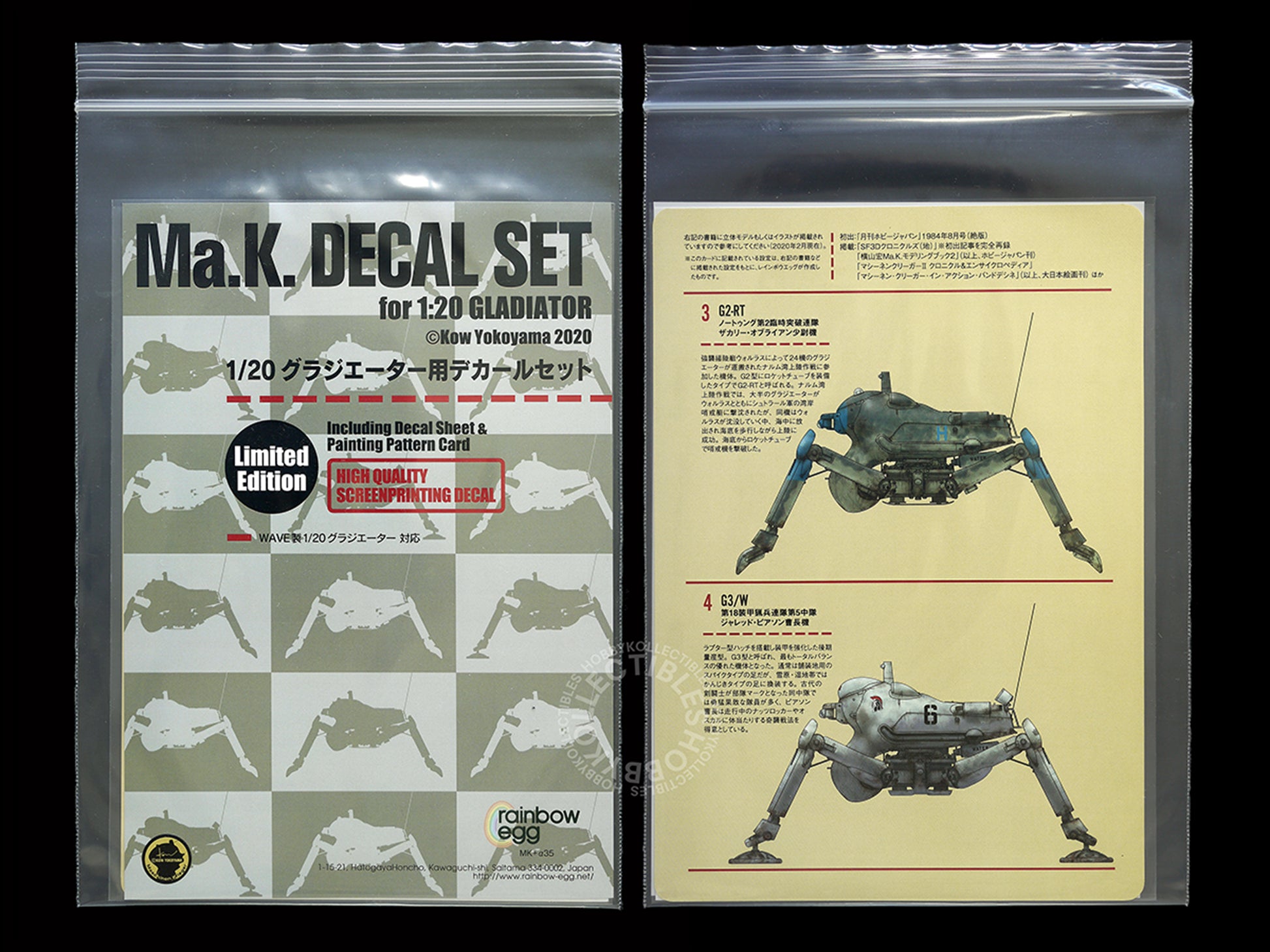 • BONUS: Rainbow Egg Special limited edition decal set for 1/20 scale Gladiator, comes with 1 decal sheet and 1 camo card.