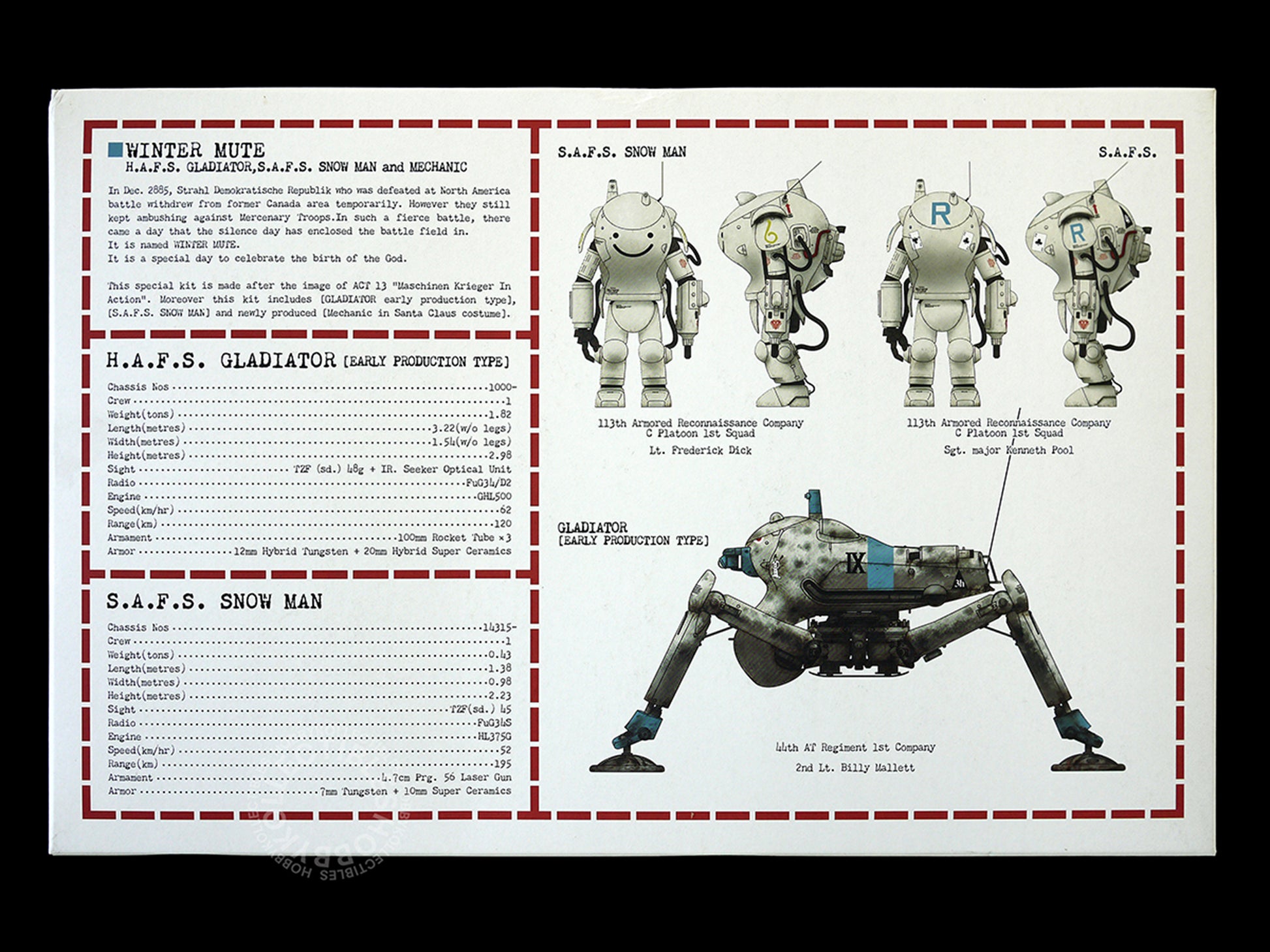 H.A.F.S. GLADIATOR, S.A.F.S. SNOWMAN and MECHANIC