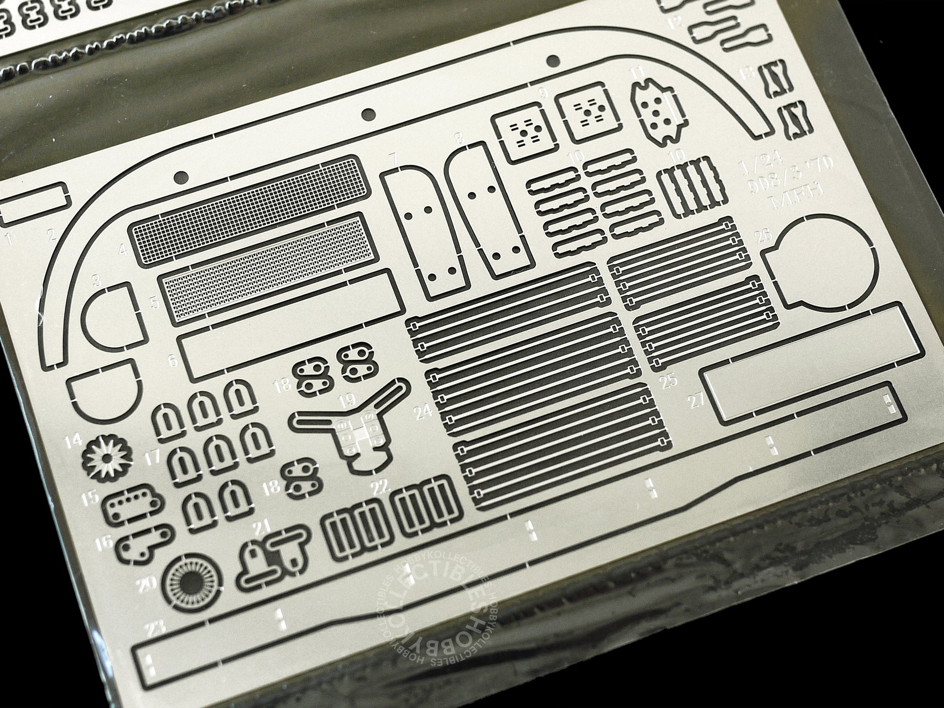 • A multi-media kit which contains mainly metal, resin, screw, etching parts and rubber tires.