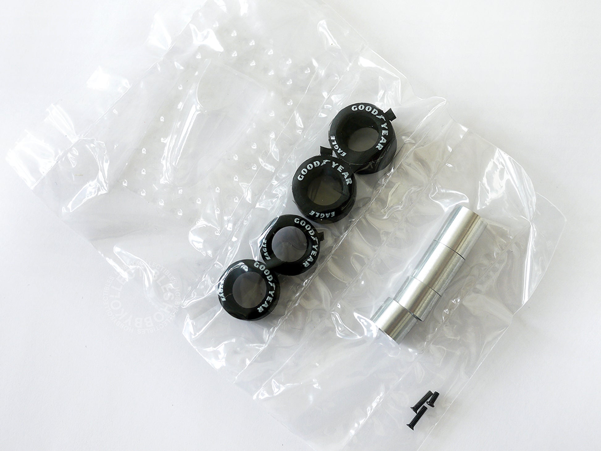 • A multi-media kit which contains mainly white metal, turned metal, screw, photo etched parts, water slide decals and rubber tires.