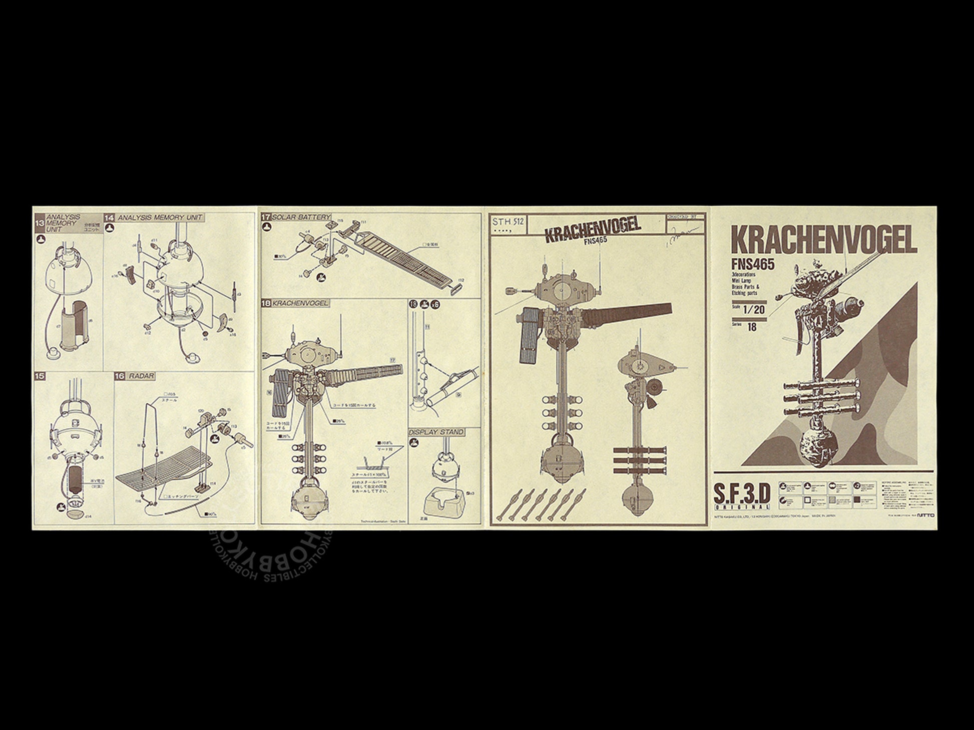 Up for sale is a beautiful & awesome vintage SF3D Original(1st generation) "Krachenvogel" model kit, comes with coil spring, light bulb, copper wire, etching plate, brass tube, camo card(color guide) and wires. Released in 1985 by early Nitto production with passion!