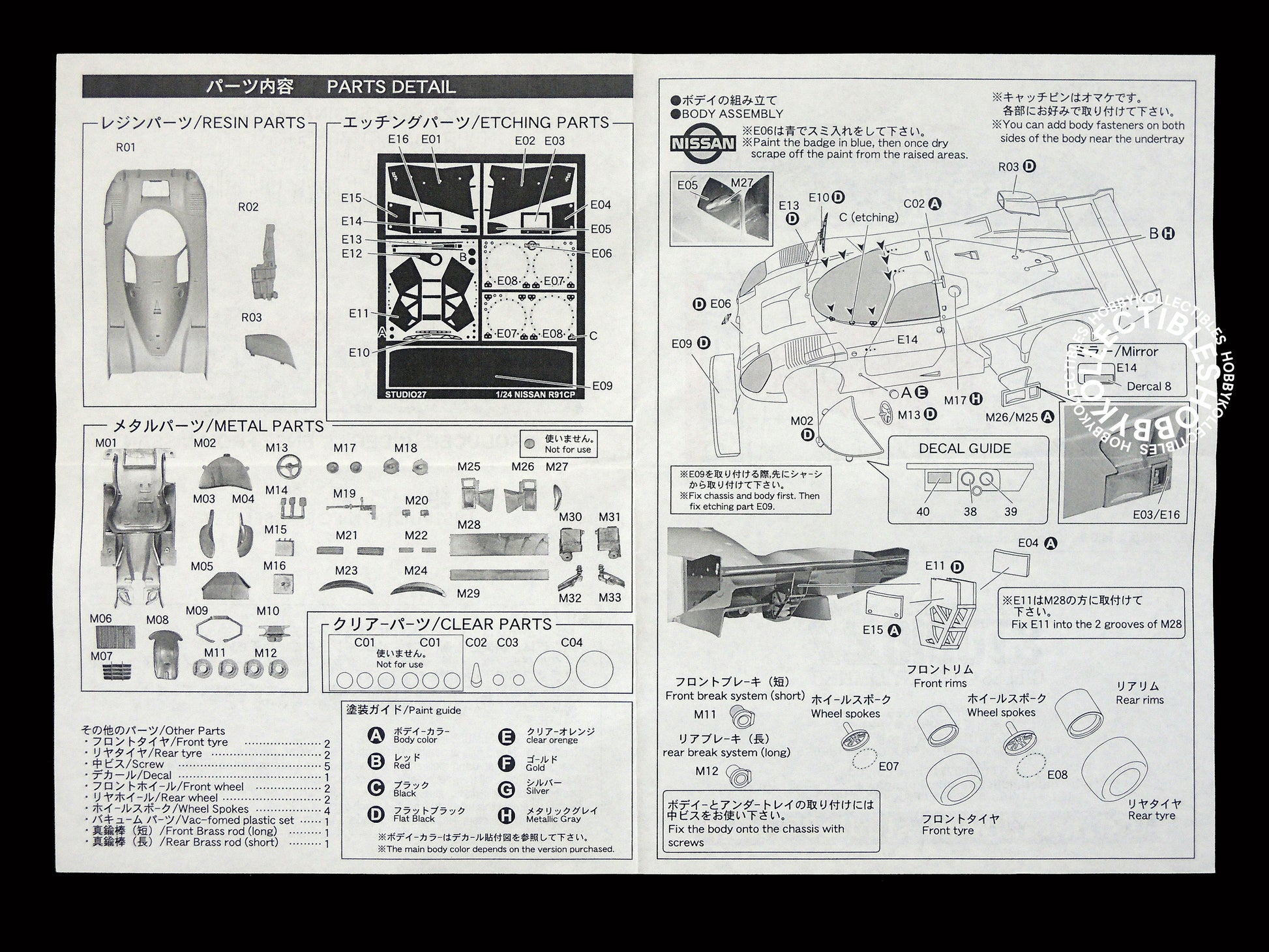 Studio 27 1/24 Nissan R91CP Daytona '92 Resin & Metal Model Kit