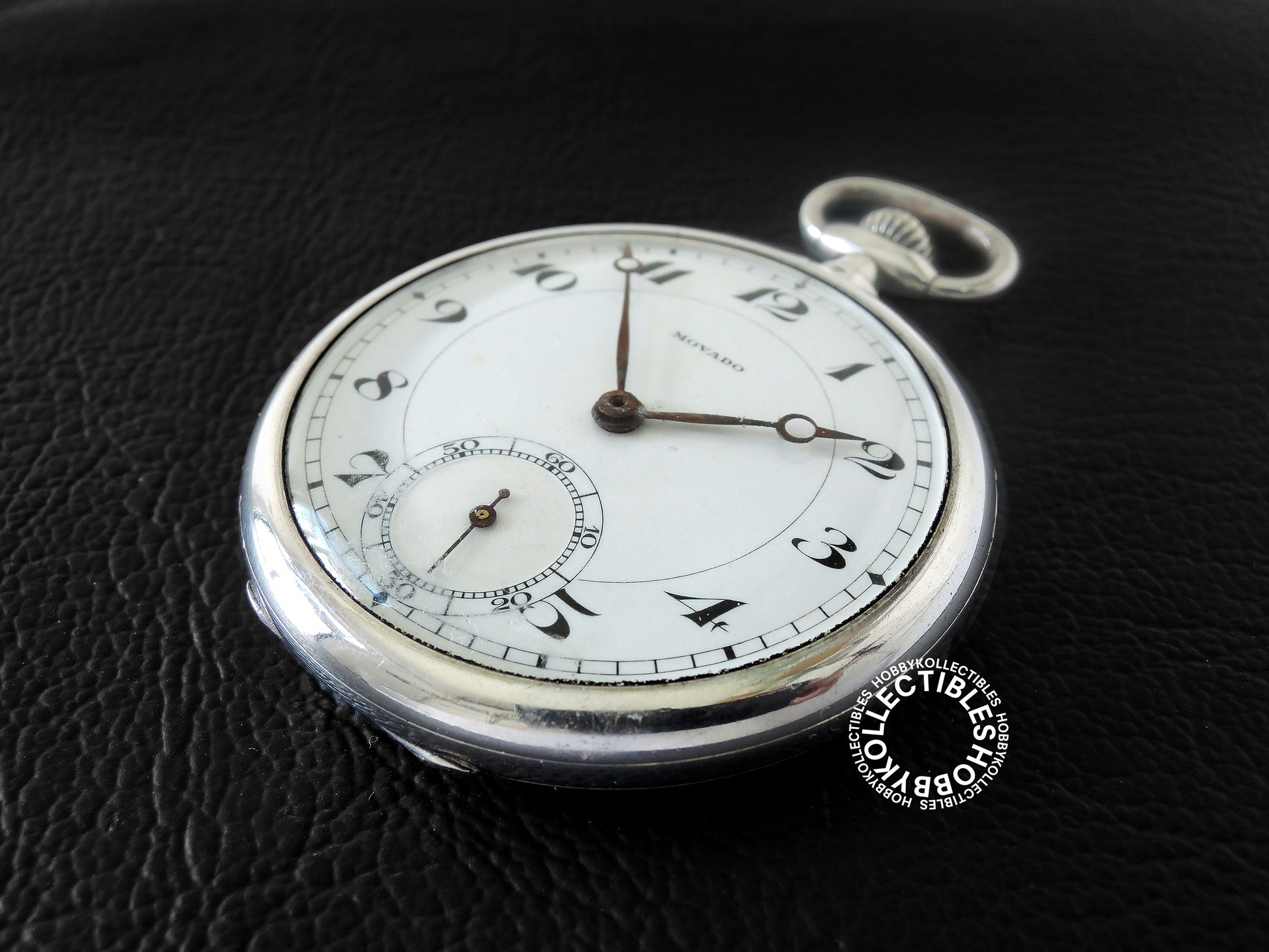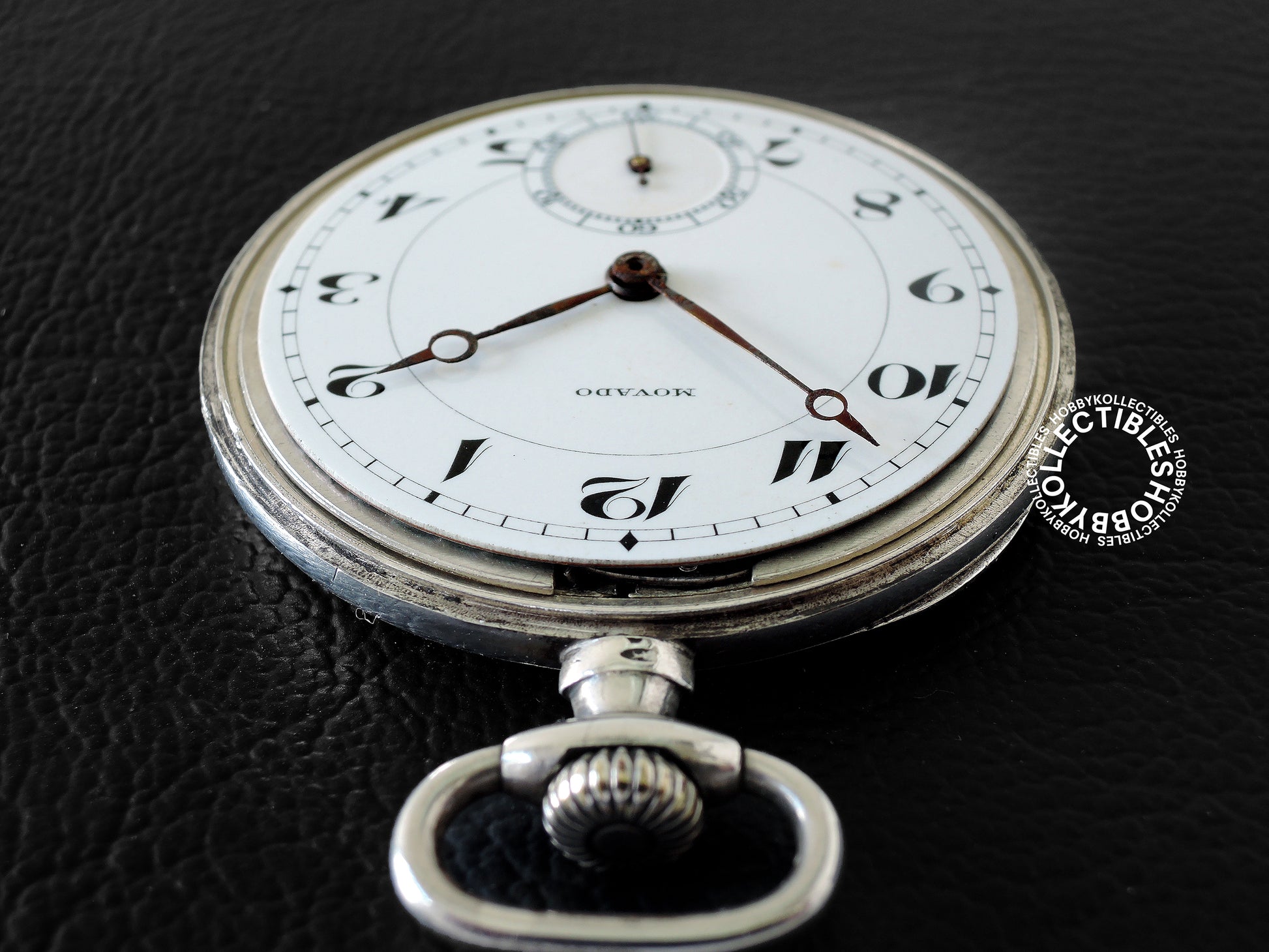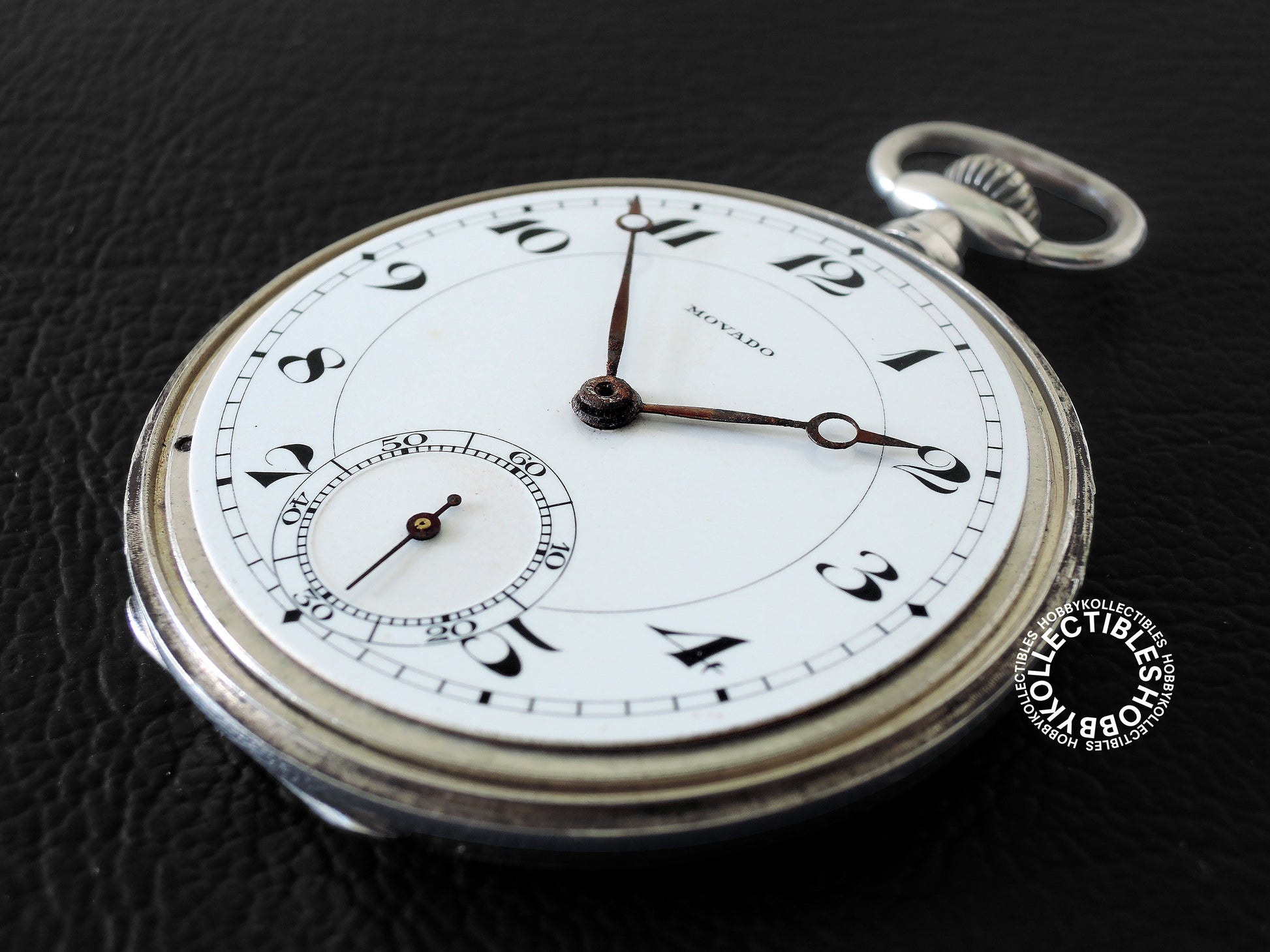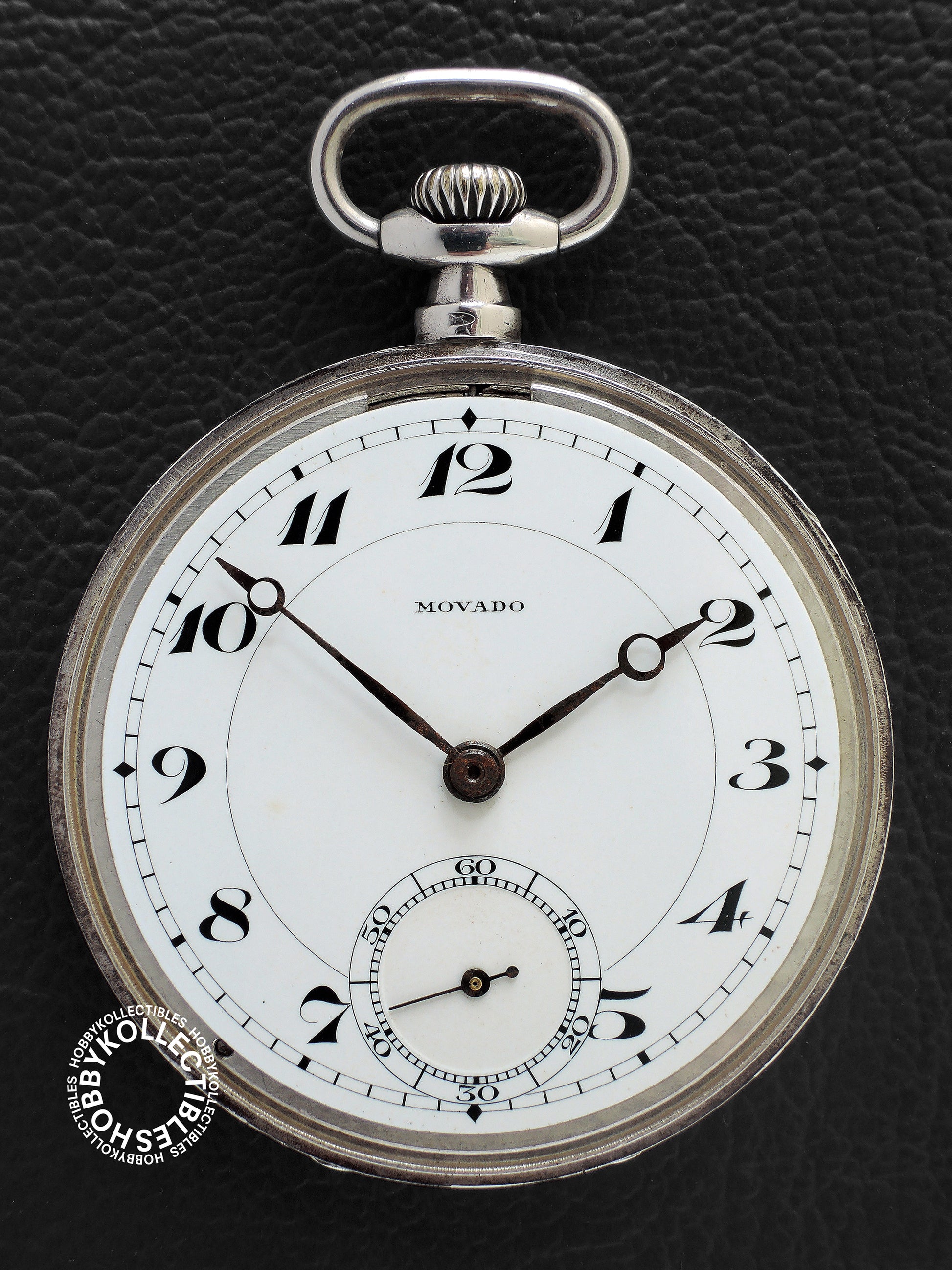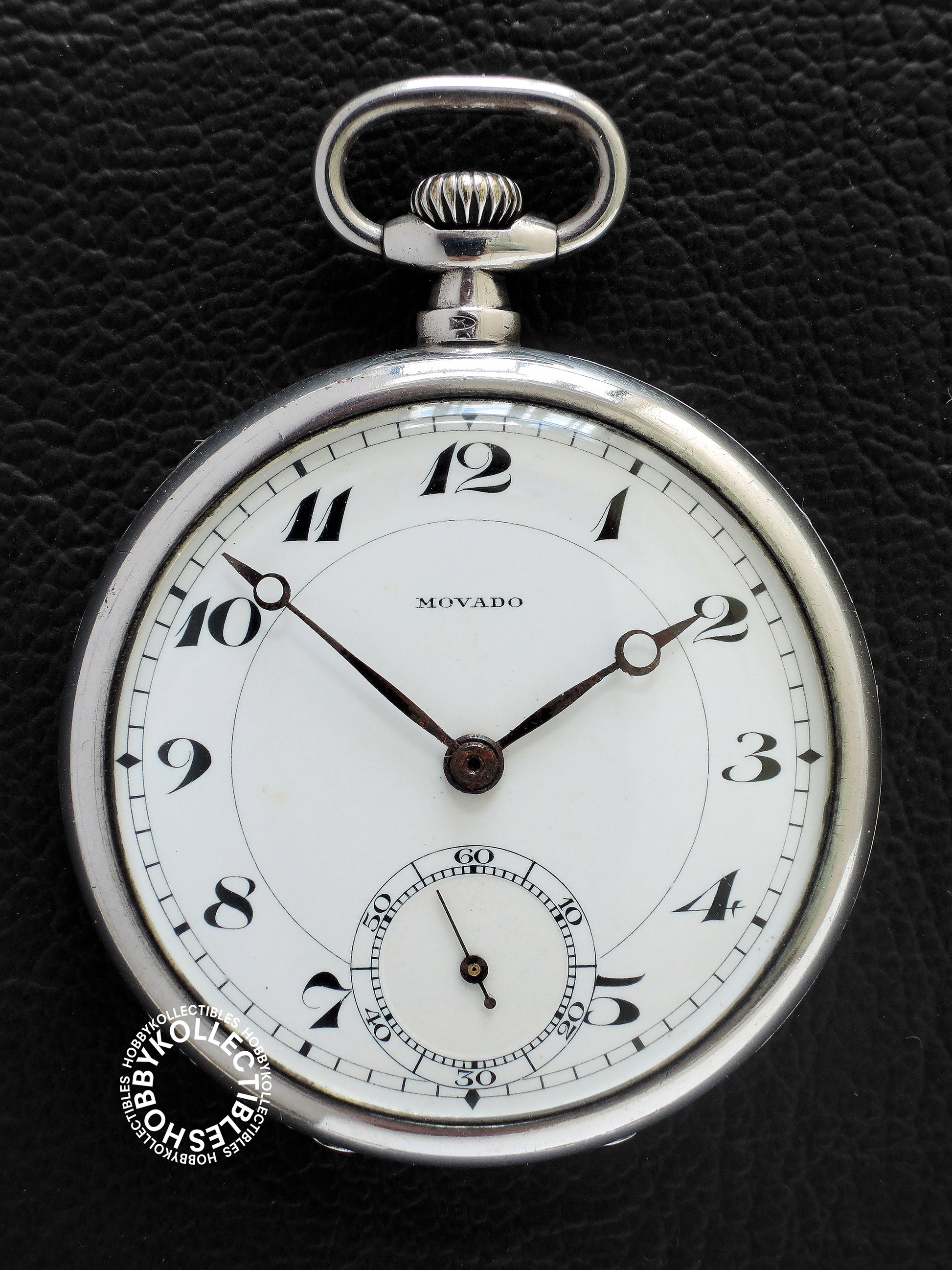 Dial : White enamel dial with few stains & marks, signed "MOVADO". Black Roman numerals and subsidiary seconds dial. Few oxidation/rusting on the hour & minutes hands.