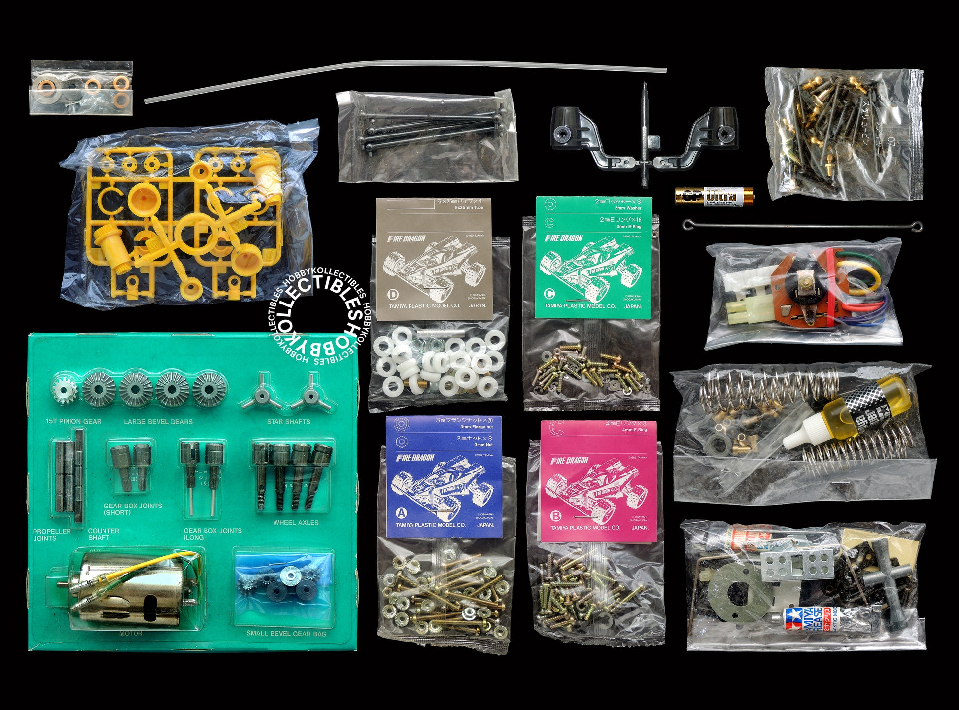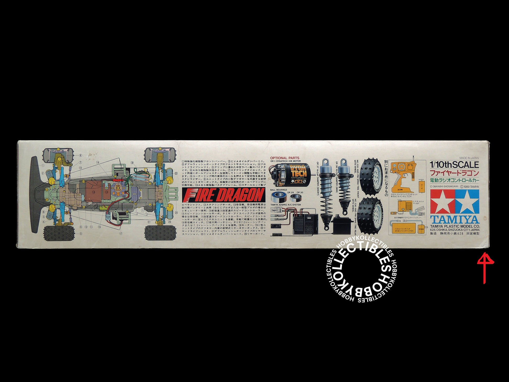 Up for sale is a very beautiful & rare Tamiya #58078 "Fire Dragon" RC racing car with Thunder Shot chassis and a speed controller also included too! truly a remarkable and awesome RC car made by Tamiya in 1989. Hard to find and highly collectible kit, a must have for collectors of the Tamiya "First 100" RC models.