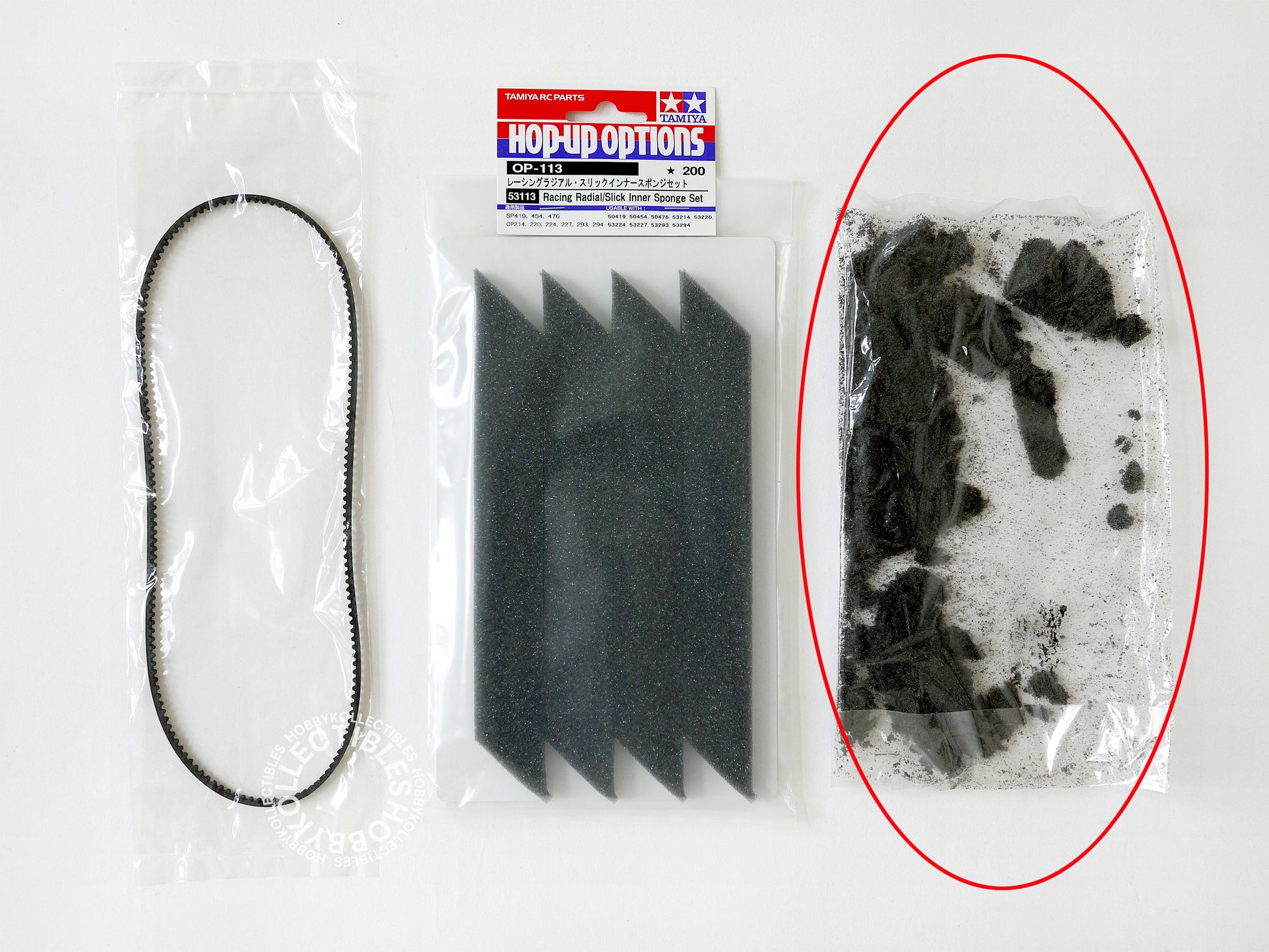 RE: The inner sponge set has been damaged due to natural ageing but a brand new Tamiya hop up options #53113 inner sponge set for replacement will be included in this kit.