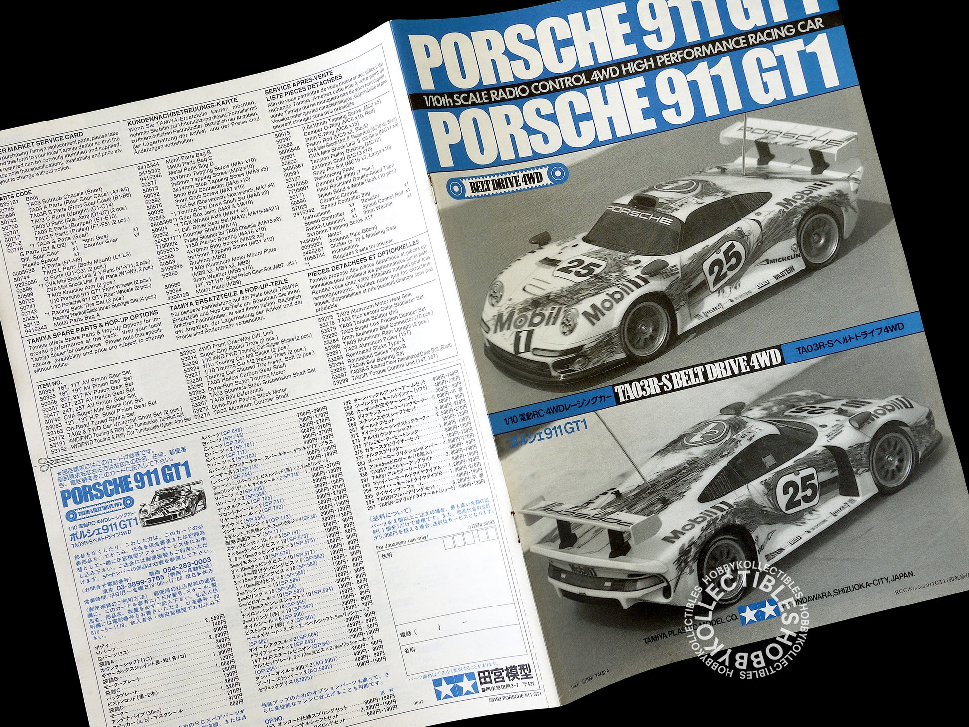 Up for sale is a extremely beautiful & rare Tamiya #58193 "porsche 911 GT1" RC racing car with Belt Drive 4WD TA03R chassis, truly a awesome RC car made by Tamiya in 1997. A must have item for both collectors and RC lovers.