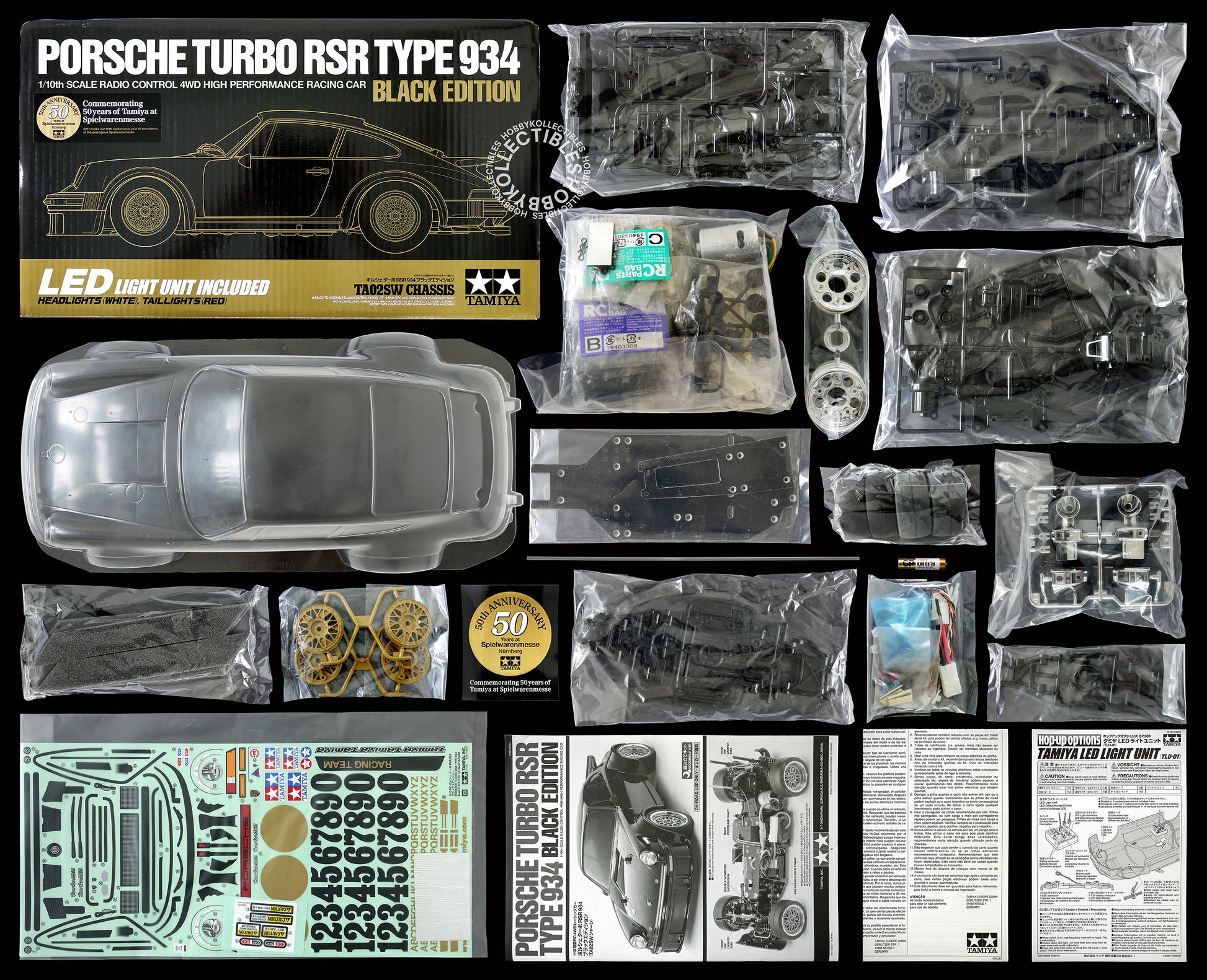 Tamiya 1/10 RC Porsche 934 #47362 50th Ann. LED Black Limited Edition