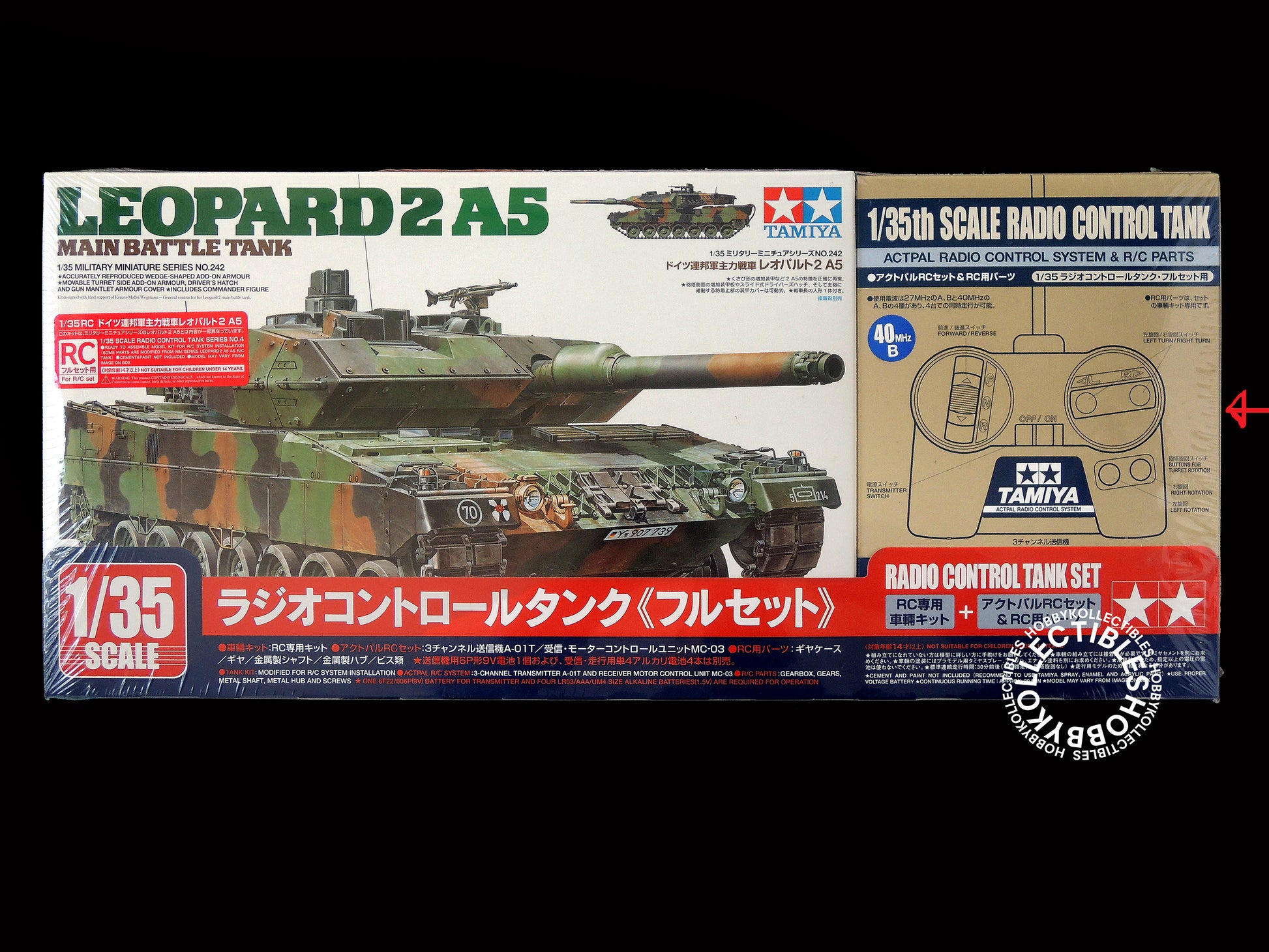 • Set comes with the basic 1/35 scale Leopard 2 A5(No.242) tank plastic model kit and Actpal radio control system & R/C parts parts.