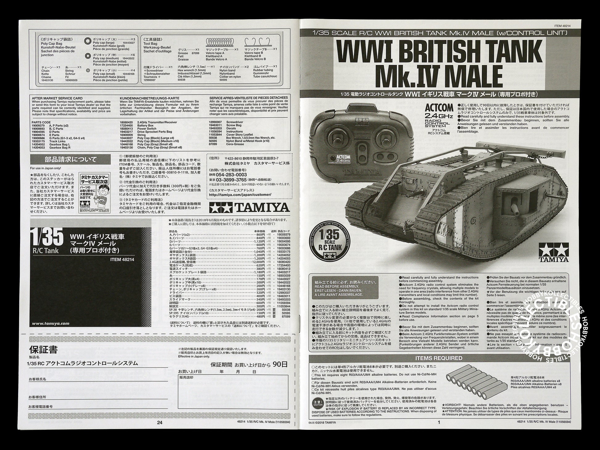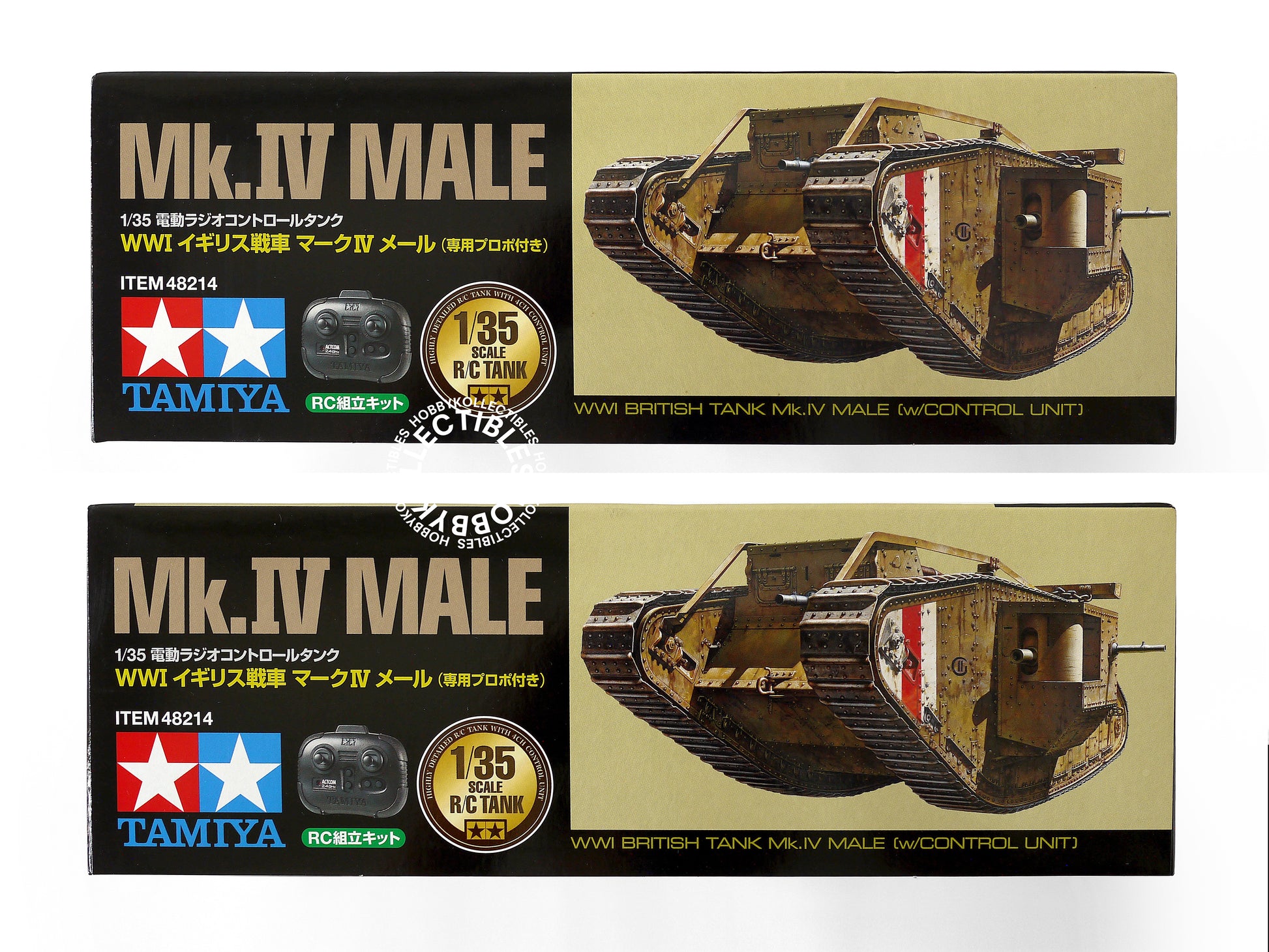 • Comes with the a 1/35 scale British MK.IV Male tank plastic model kit and Actcom 2.4GHz radio control system & R/C parts parts.