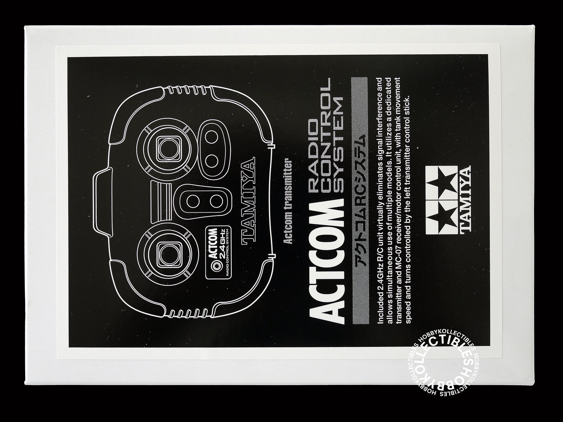 Included 2.4GHz R/C unit virtually eliminates signal interference and allows simultaneous use of multiple models. It utilizes a dedicated transmitter and MC-07 receive/motor control unit, with tank movement speed and turns controlled by the left transmitter control stick.