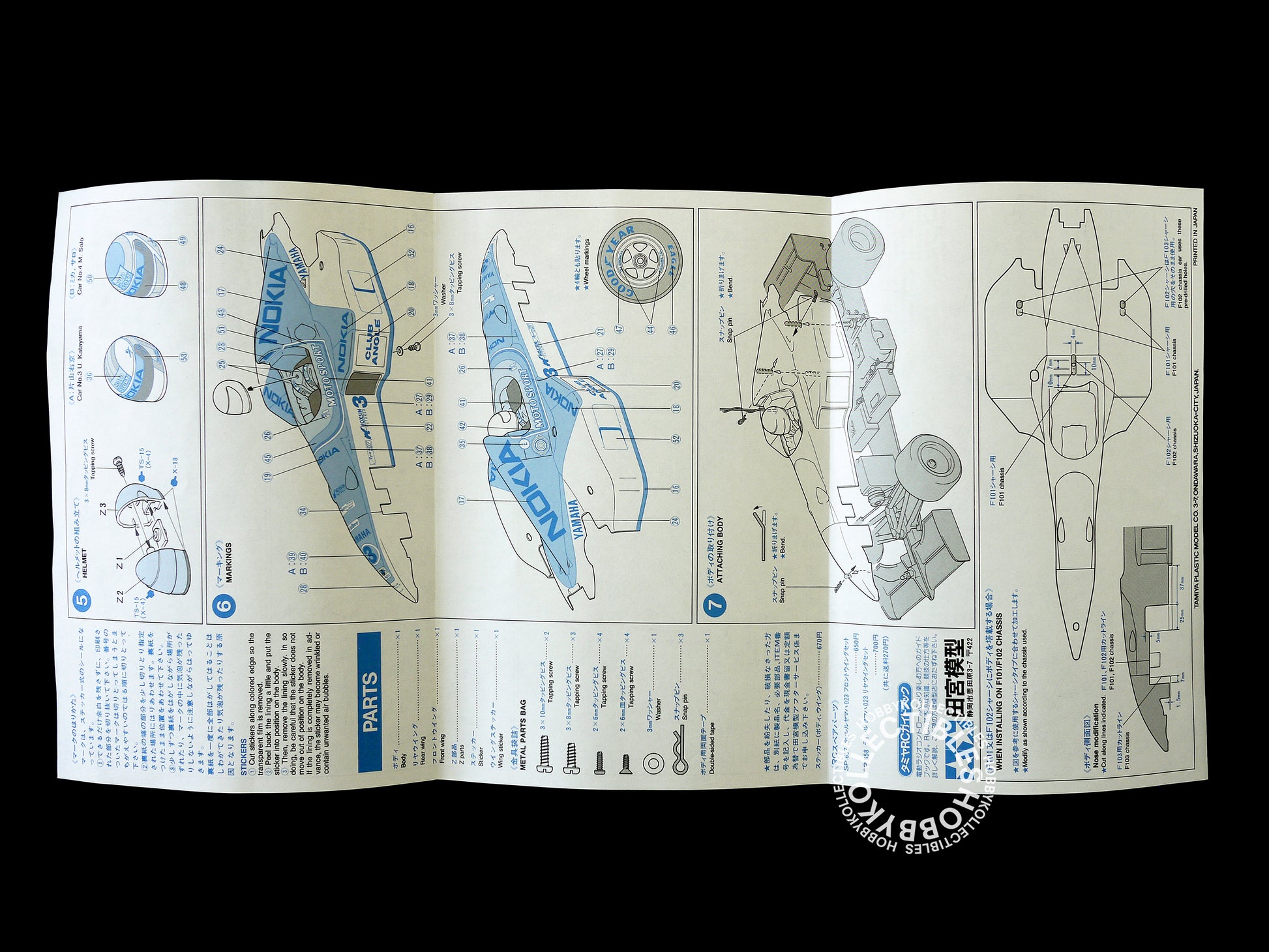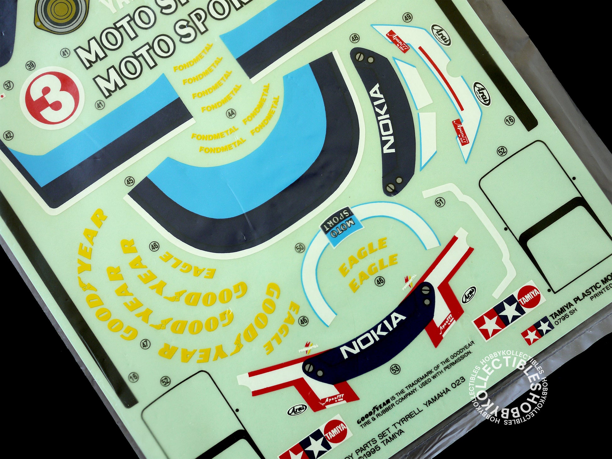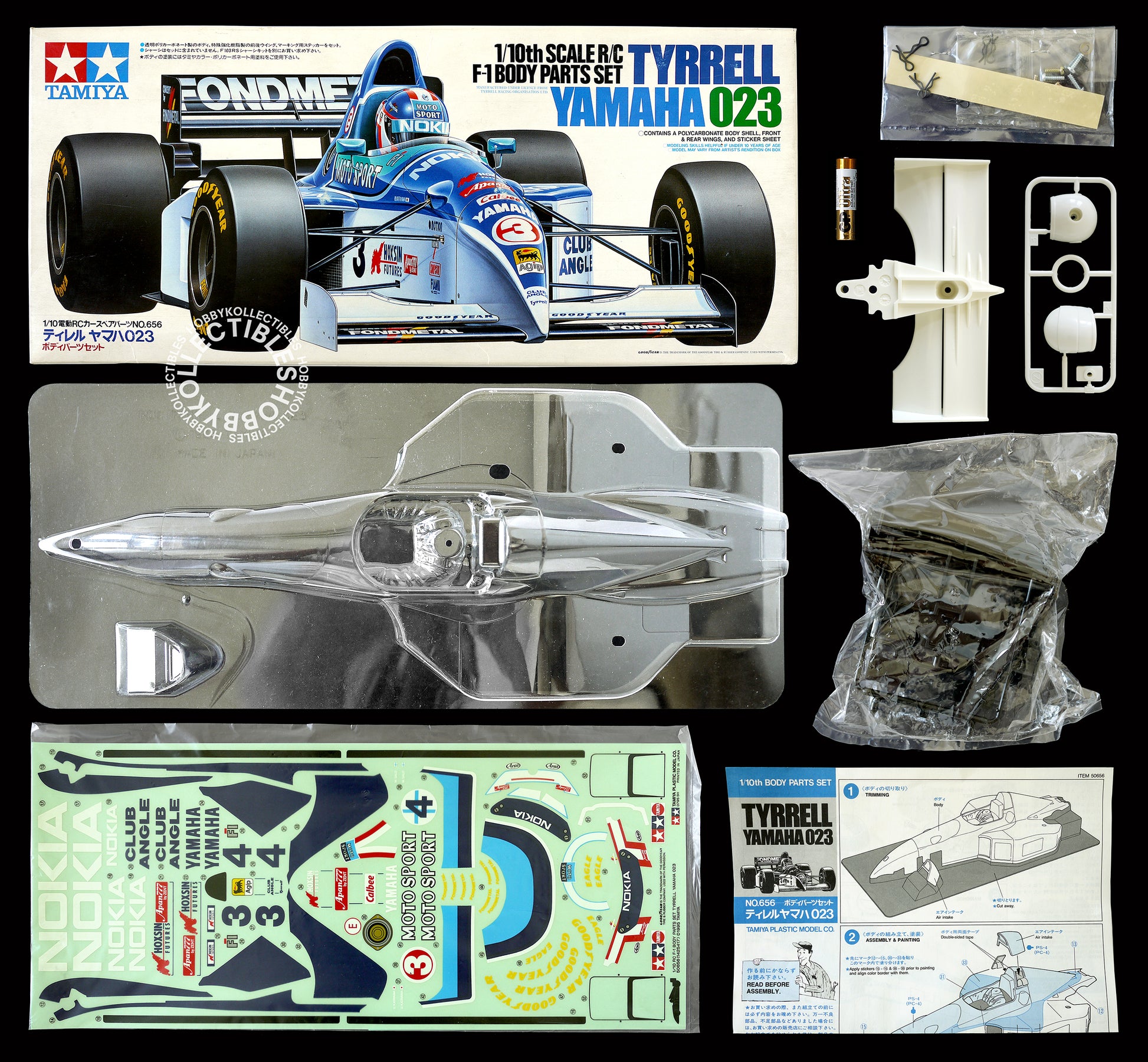 Up for sale is a very beautiful & rare Tamiya "Tyrrell Yamaha 023" body parts set, stickers, tail and driver head are also included!. Truly a remarkable and awesome RC car made by Tamiya in 1995. This is a highly collectible kit, a must have for Tamiya RC models collectors.