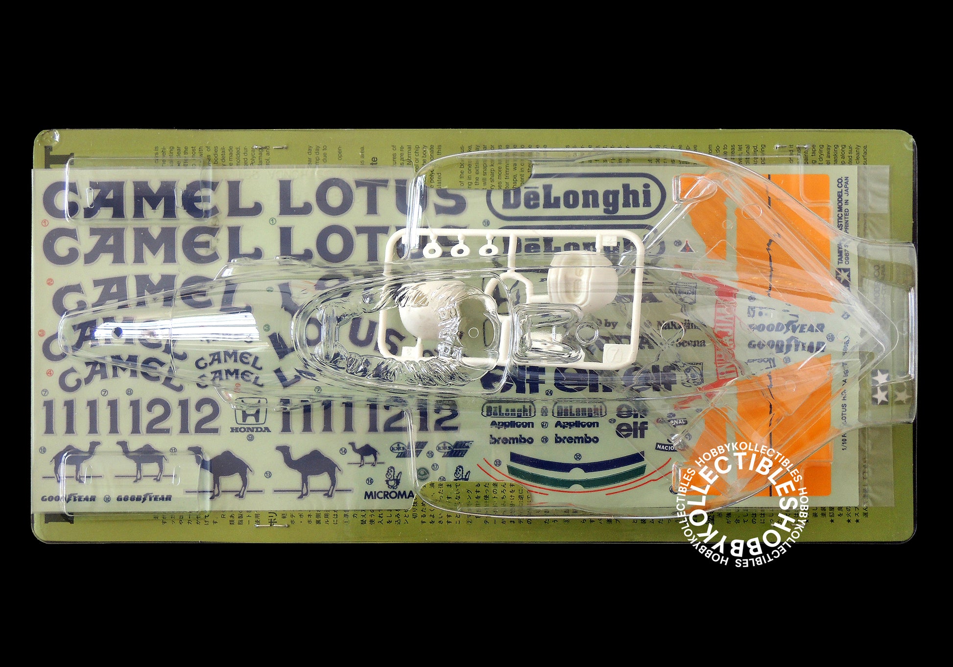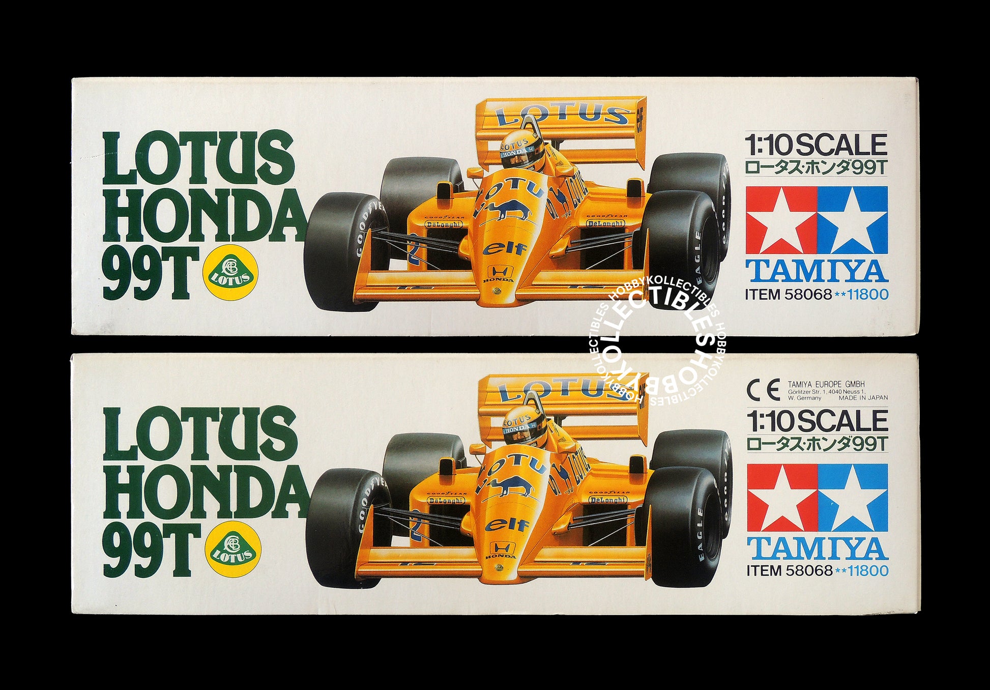 Up for sale is a very beautiful & rare Tamiya #58068 "Lotus Honda 99T" RC racing car with Road Wizard chassis, yellow camel livery stickers, truly a awesome RC car made by Tamiya in 1987. This is a hard to find and highly collectible kit, a must have for collectors of F1 models and the "First 100" Tamiya RC models.