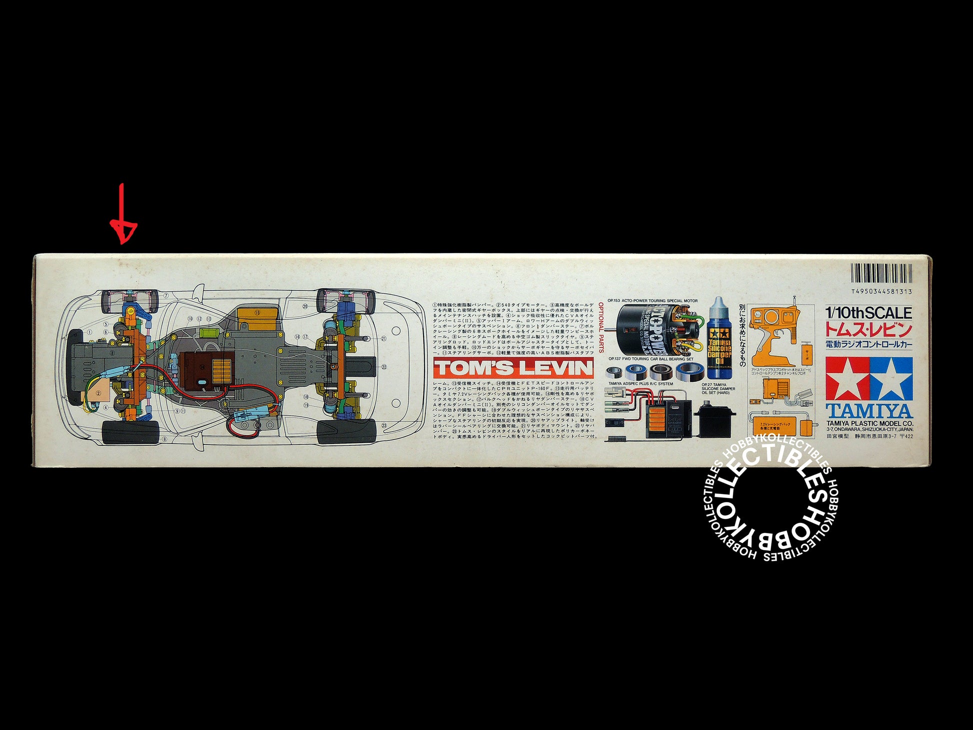 Up for sale is a very beautiful & rare Tamiya #58131 "Tom's Levin" RC racing car with FWD chassis, truly a awesome RC car made by Tamiya. A hard to find and must have item for both collectors and RC lovers.