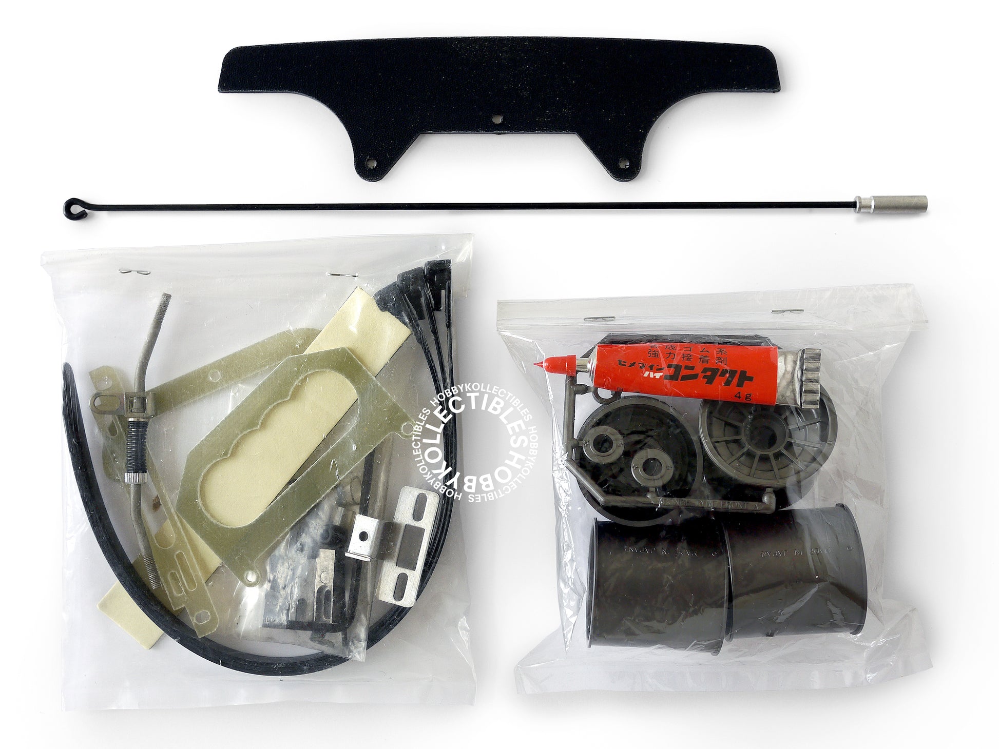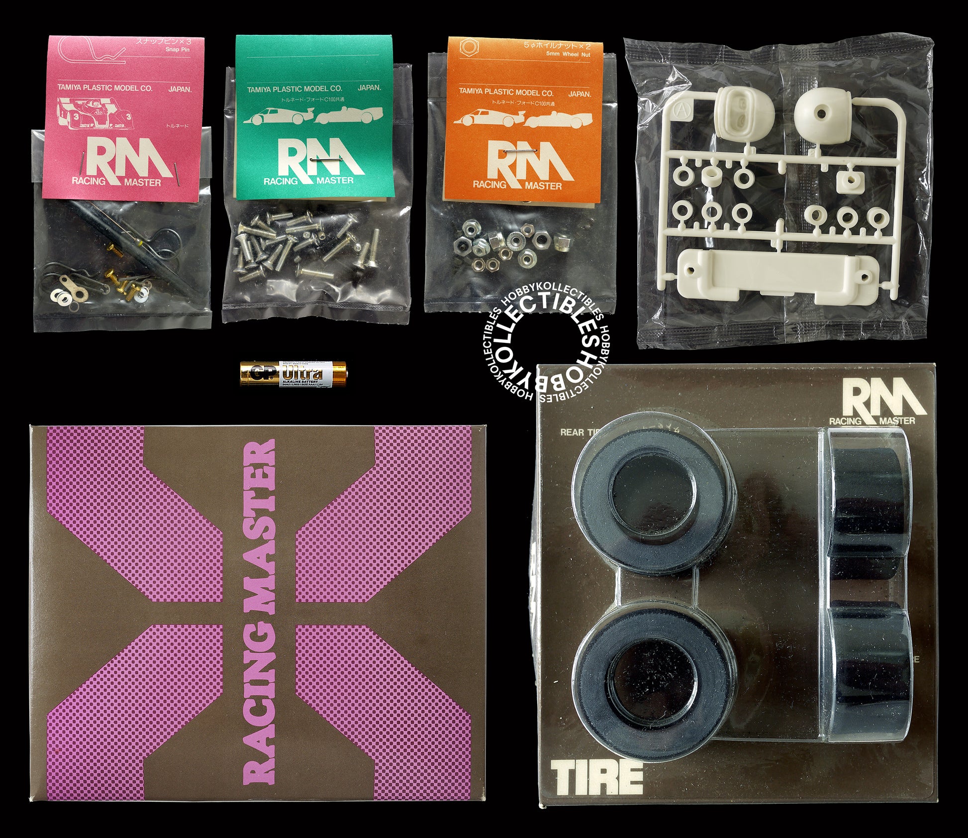 BONUS: Vintage Tamiya spare parts No.216 Sponge tire (Front D) with wheels and No.217 Sponge tire (Rear H) with wheels. Both are in unused/new condition but the packaging are damaged and very dirty, plastic bags has been opened and MISSING the cement.